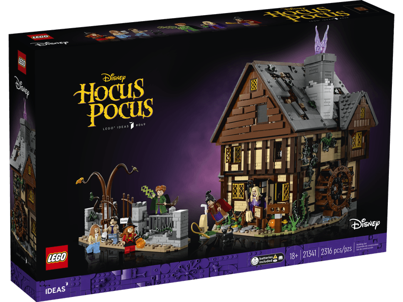 Haal een betoverende filmklassieker in huis met LEGO® Ideas Disney Hocus Pocus: het huisje van de Sanderson-zussen (21341). Het huisje kan op meerdere manieren worden geopend om de interieurdetails gemakkelijk te kunnen bekijken, waaronder de cadeauwinkel van het museum, de ketel met een LEGO verlichtingssteen om het vuur eronder te verlichten, het spreukenboek en de slaapkamer vol vleermuizen. Maak de zijkamer los waar Dani Dennison door de heksen werd gevangen en draai aan het waterrad om roze ‘rook’ uit de schoorsteen te laten komen.