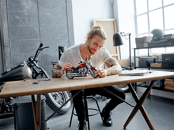 Ontdek de subtiele details van een onvergetelijk staaltje techniek met de LEGO® Creator Expert 10269 Harley-Davidson® Fat Boy® motor. Deze zeer gedetailleerde LEGO motor is ontwikkeld in samenwerking met Harley-Davidson en geeft de magie van de echte machine nauwkeurig weer, van zijn Lakester-schijfwielen met vette banden tot zijn ‘teardrop’-tank met logo-opdruk en ingebouwde snelheidsmeter. Daarnaast is het model uitgerust met een Milwaukee-Eight® motor met bewegende zuigers, een dubbele uitlaat, een stuur met handvatten, een beweegbaar schakelpedaal en beweegbare remhendels, een standaard en een stevige houder. Dit fantastische model, dat is afgewerkt in donkerrode en zwarte kleuren. Deze geavanceerde LEGO set biedt een boeiend en plezierig bouwproces.